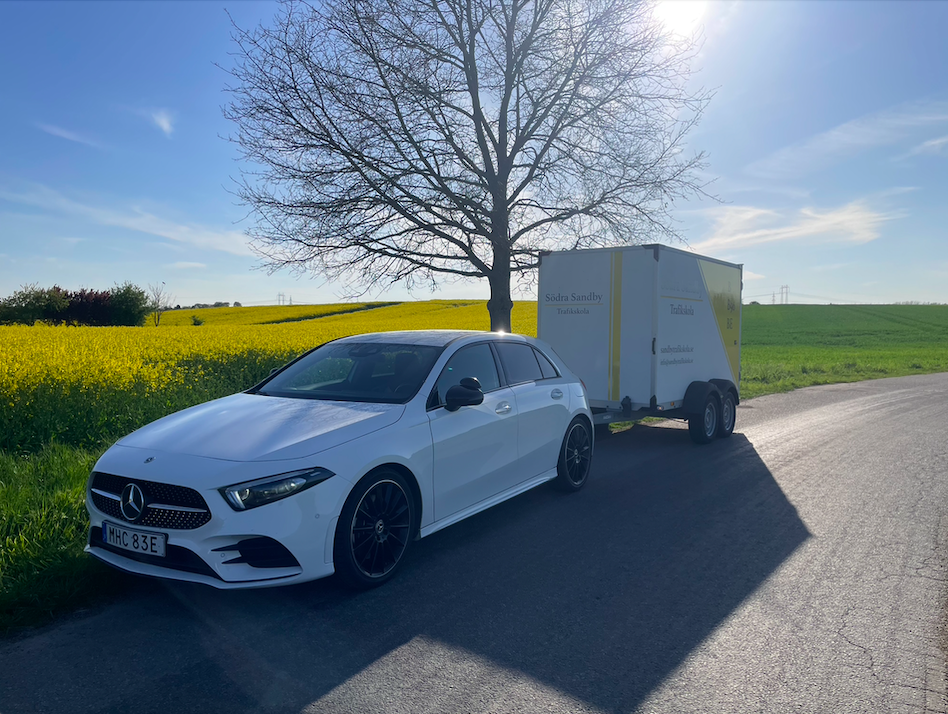 2 st lektioner och 1 st uppvärming och hyra av bil och släp vid körprov |